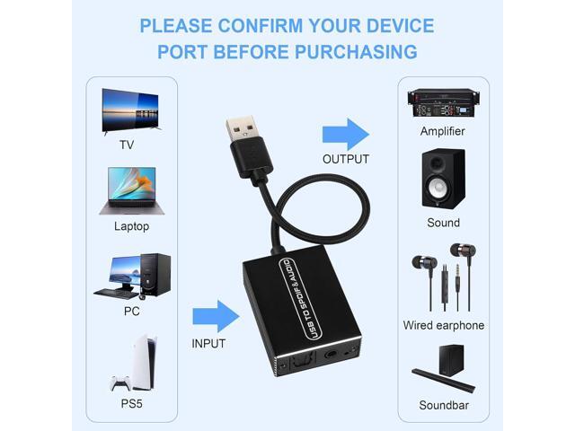 USB Audio Extractor Converter USB to Optical Spdif Toslink & 3.5mm Audio Adapter Converter for TV, PS5, PS4, PC, Laptop,Smartphone to Sound Box Amplifier or Home Theater