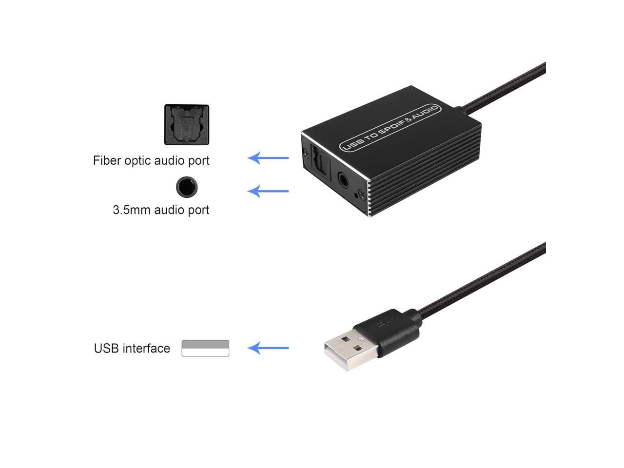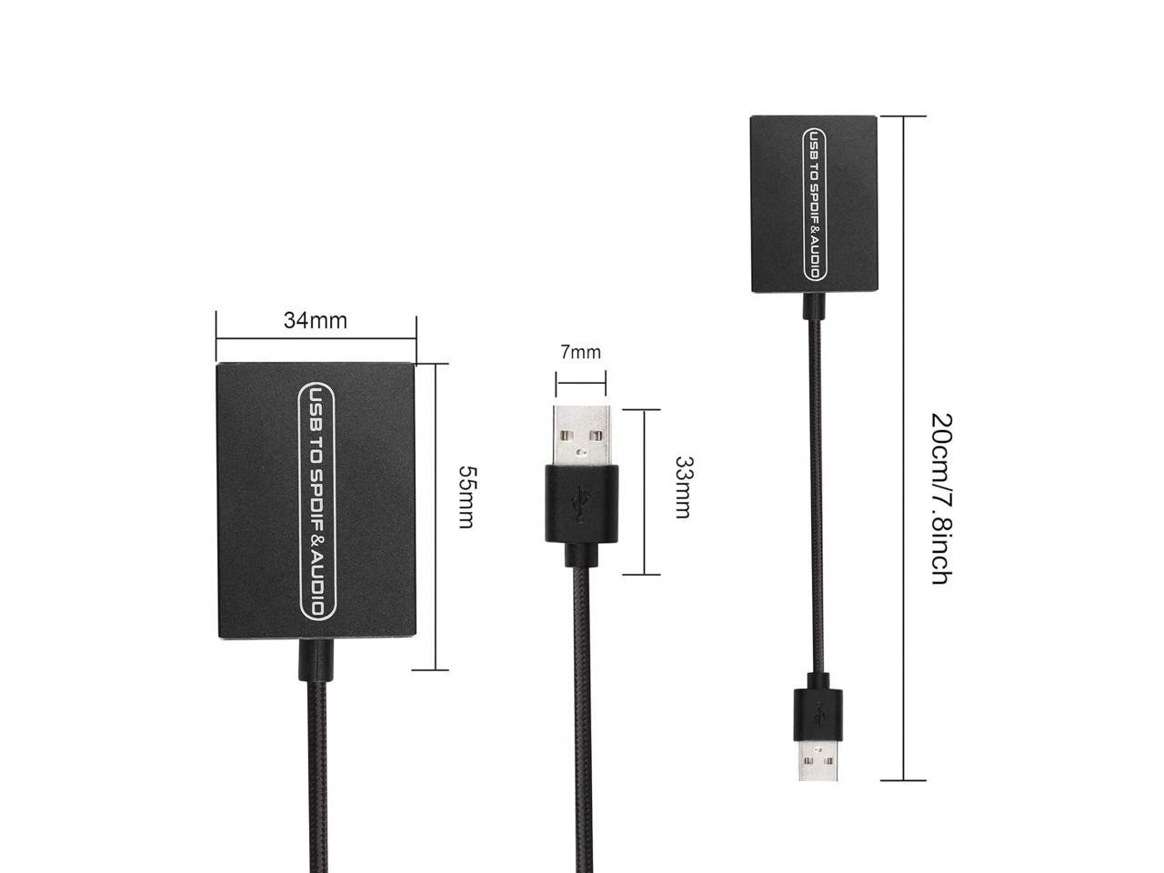 Input:USB 2.0 Male ;Output: Digital Fiber Optic Audio Jack + 3.5 mm audio jack;Cable length: 20 cm/7.8 inches
