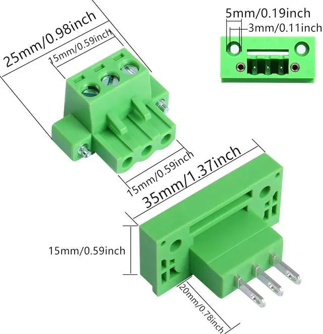 Function3-Pole terminal pitch: 5.08mm. Through-wall plug-in screw terminal. One set: through-wall pin holder + connector socket. 2 sets/package. Suitable for electrical connection, bid farewell to traditional wiring, bid farewell to dangerous, safe wiring