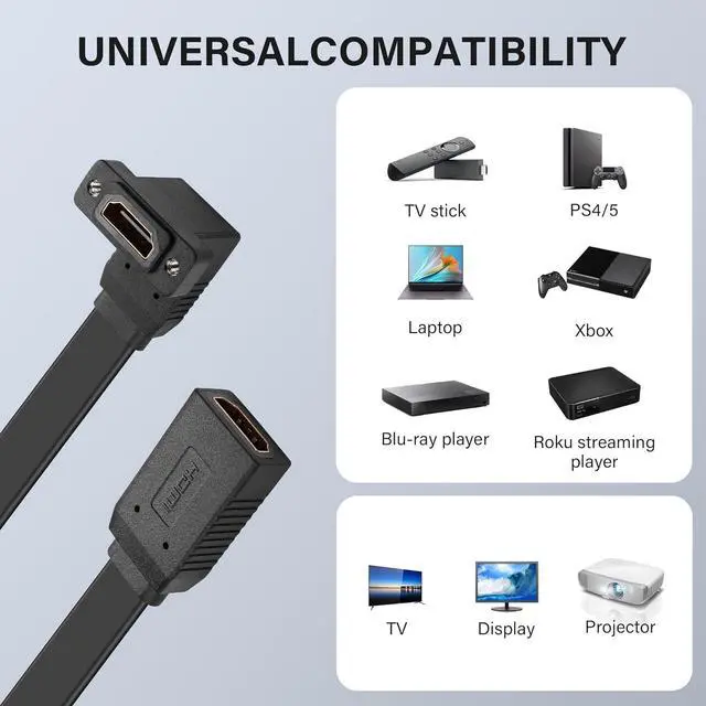 90 degree90 degree HDMI Extension Cable provide spare or replacement units for different equipments. Gold plated connectors resist corrosion and provide rigidity