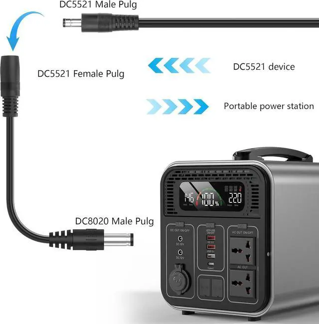The DC8020 to DC7909 adapter cable can be quickly and easily connected or disconnected without the need for additional tools, simply unplug it. It is the best choice for charging your portable power station and small car appliances.