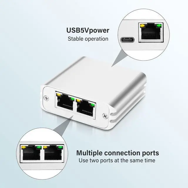 1000 Mbps transmission rate, physical isolation without affecting each other, high-speed transmission, stable without delay,No power supply required, just plug it in and use it.