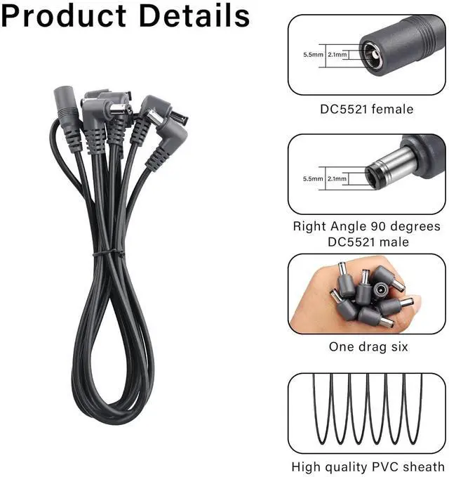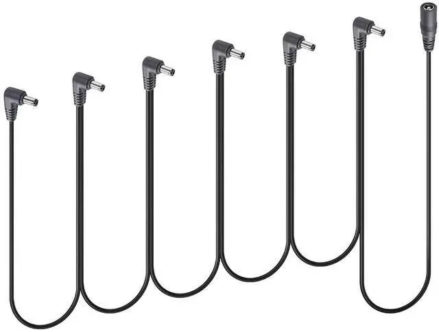 Guitar Effector Topology Power Supply Cable DC 5.5mm x 2.1mm 1 Female to 6 six Angled 90 Degree Male Effector Extension Power Cable for Guitar Effect Pedal