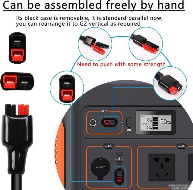 45A solar connector, its black case is removable, it is standard parallel now, you can rearrange it to GZ vertical as required, red is positive and black is negative