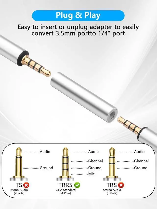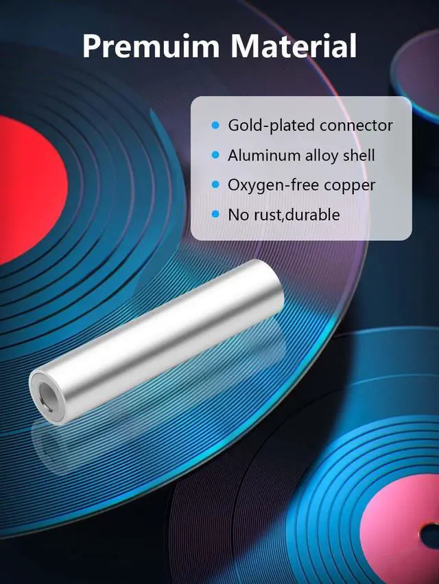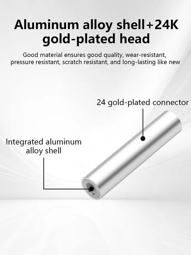 1/8 inch stereo male to male aluminum alloy connector. The integrated aluminum alloy shell is wear-resistant and scratch resistant. The 24K gold-plated plug provides faster audio signal transmission, ensuring stable audio transmission without delay.