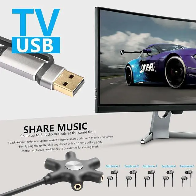USB A/C Male to 5-Port 3.5mm Female Headphone Audio Splitter 5 Jack 3.5mm Stereo Music Sharer 1 Male and 5 Female Splitter Phone Computer Jack Separato (with USB)