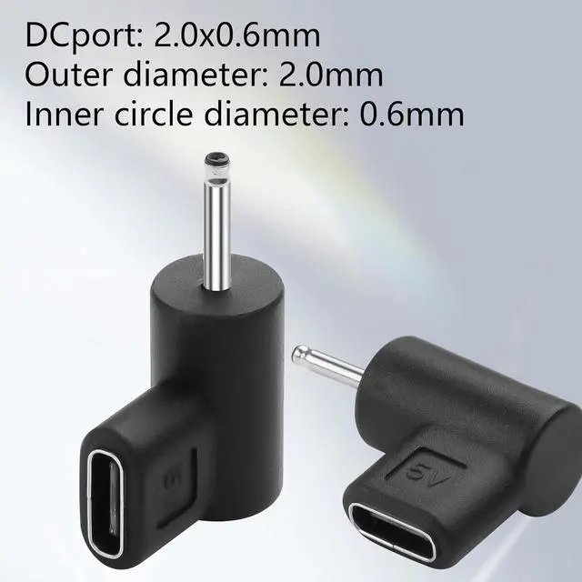 2PCS Type-C Female to DC5V Charging Adapter DC2.0 Short Version Female Type C to DC 2.0 Male Suitable for DC Interface Devices Such as Flashlights, etc; DC2.0X0.6mm
