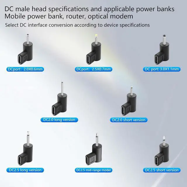 Note: DC male head specifications and applicable power banks, portable power banks, routers, and optical modem Select DC interface conversion according to device specifications