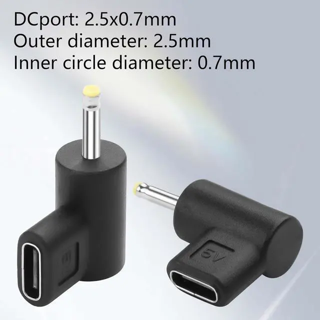 2PCS Type-C Female to DC5V Charging Adapter DC2.0 Short Version Female Type C to DC 2.0 Male Suitable for DC Interface Devices Such as Flashlights, etc; DC2.5X0.7mm