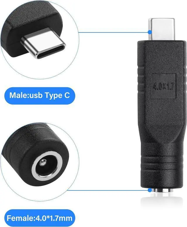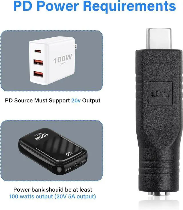 USB C male to DC 4.0 x 1.7mm female power adapter allows you to use a USB C charger or portable power bank to power 100W devices anytime, anywhere, making charging simple without the need to carry additional power sources