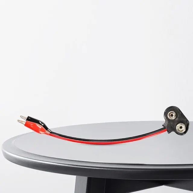 9V battery snap to alligator clips cable easily connecting power to small circuit boards, motors, LED lights and other widgets