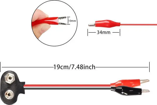 9v battery snap to double alligator clip cable is great for replacing old connectors corroded by battery leaks, replacing damaged battery connectors on electronics