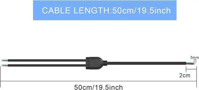 Power cord extension adapter length 50CM/19.5Inch, tail stripping 2CM, tin plated 5MM