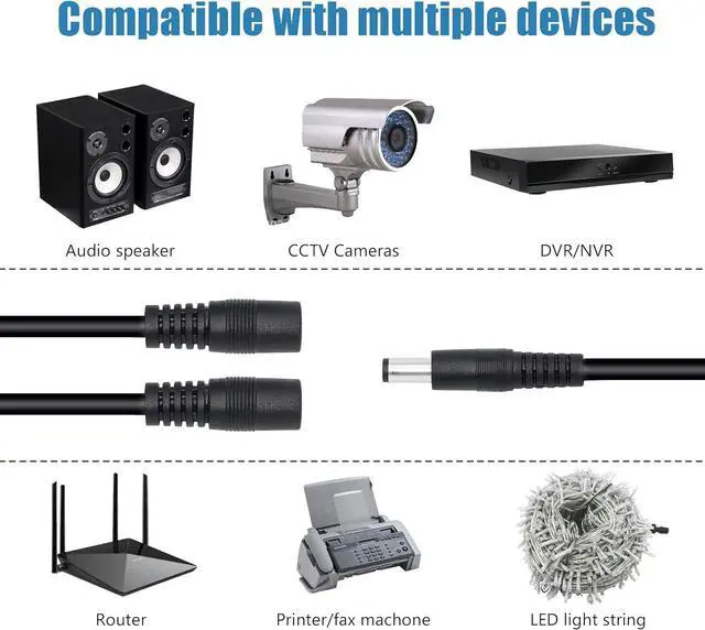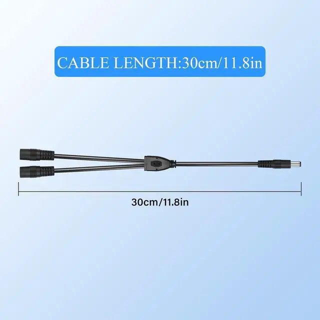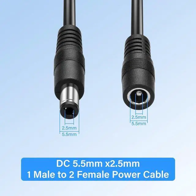 DC 5.5mm x 2.5mm 1 male to 2 female DC power distribution cable is very suitable for your CCTV surveillance camera/LED light bar. A convenient and cost-effective way to use one power adapter to power two cameras/LED strips.