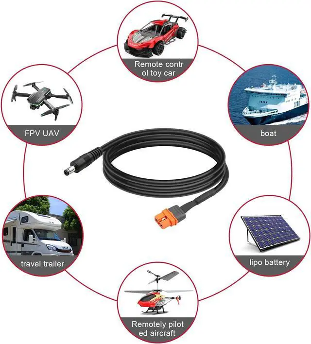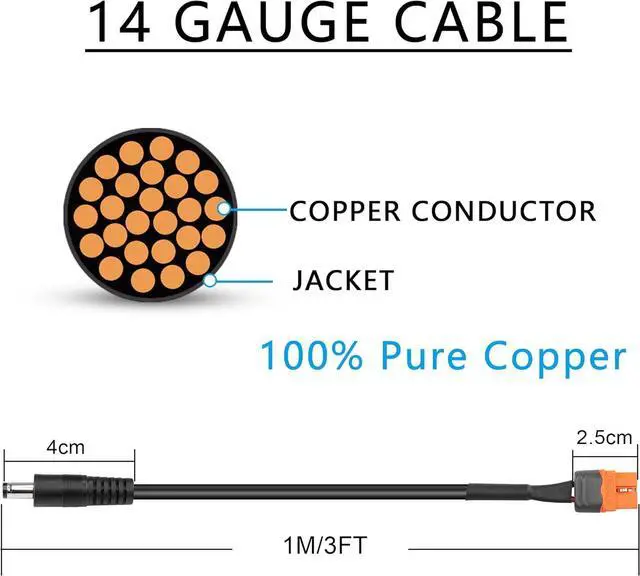 DC 5.5x2.5mm to XT60 Adapter Cable:14AWG XT60 to DC power cable designed for connecting the solar portable power station with XT60 input to the solar panel.