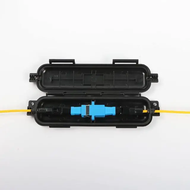 Optical cable connection box is a junction box with 1 input and 1 output. It adopts TPE seal design, waterproof rubber gasket on the edge, and strong sealing protection.