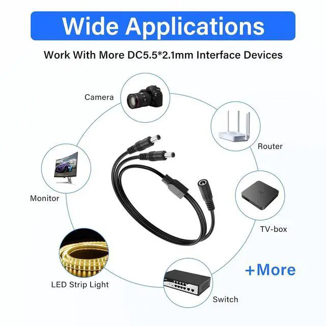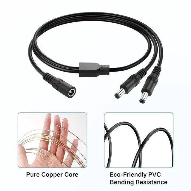 DC 1 Female to 2 Male Power Splitter CableUsed with any DC power adapter, it can power multiple devices through one adapter, plug and play.