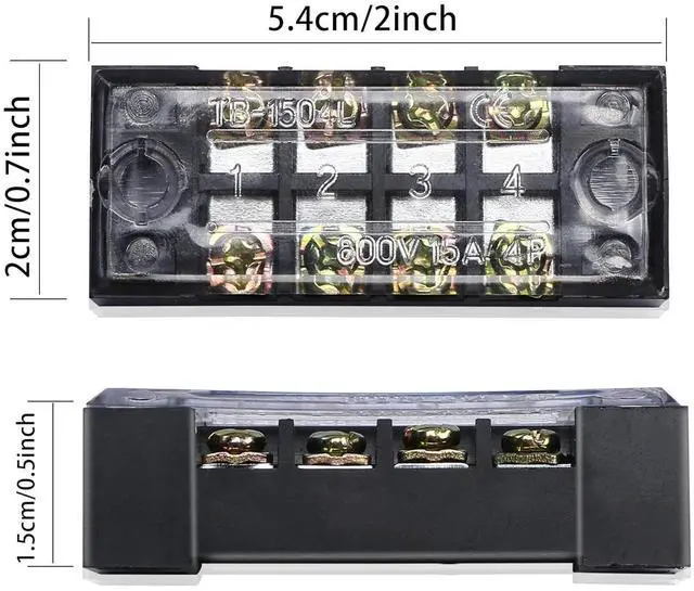 4-position double-row screw terminal block can help you connect bare wires to avoid clutter,Removable clear plastic insulating cover prevents accidental contact the terminals.