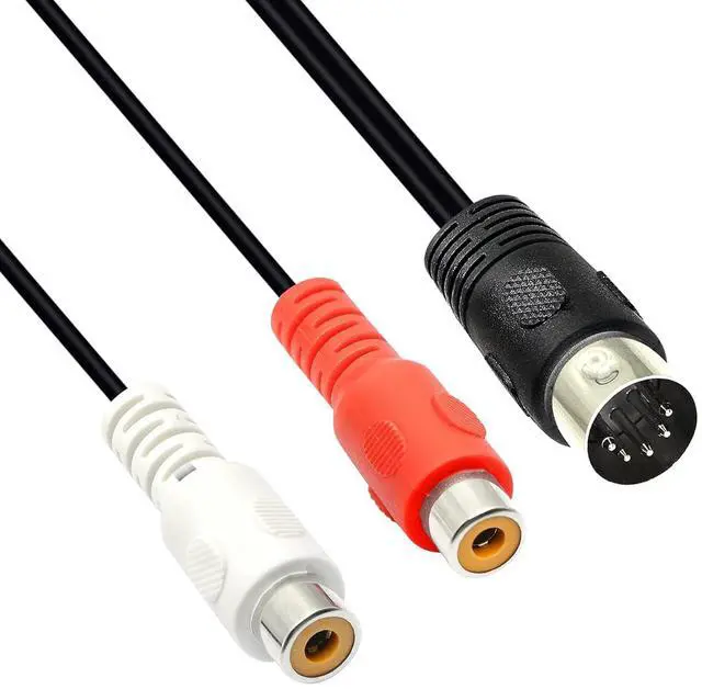 Connectors: Metal 5-pin Din male plug on one end - Metal 2 RCA female on other end,Cable Length: 5ft/1.5m