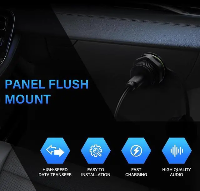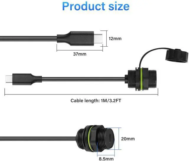 Easy to Install:Waterproof cable for USB C to USB C car dashboard mounting, you just need to cut a 20mm hole on the surface of the board and fix it with a nut to extend and expand the USB C port.