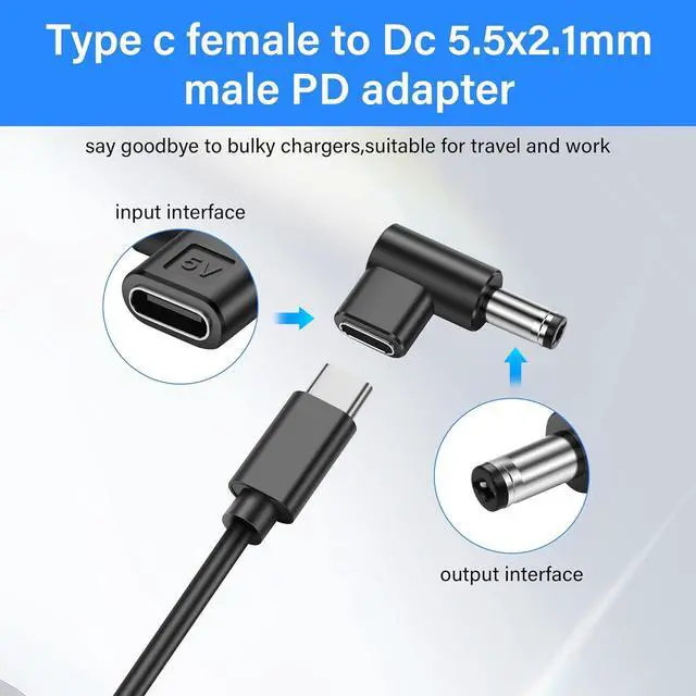 This DC to USB-C charging adapter frees you from the hassle of a heavy charger/power brick, allowing you to safely store it in your backpack, wallet, pocket, briefcase, desk drawer, making it easy to carry and use