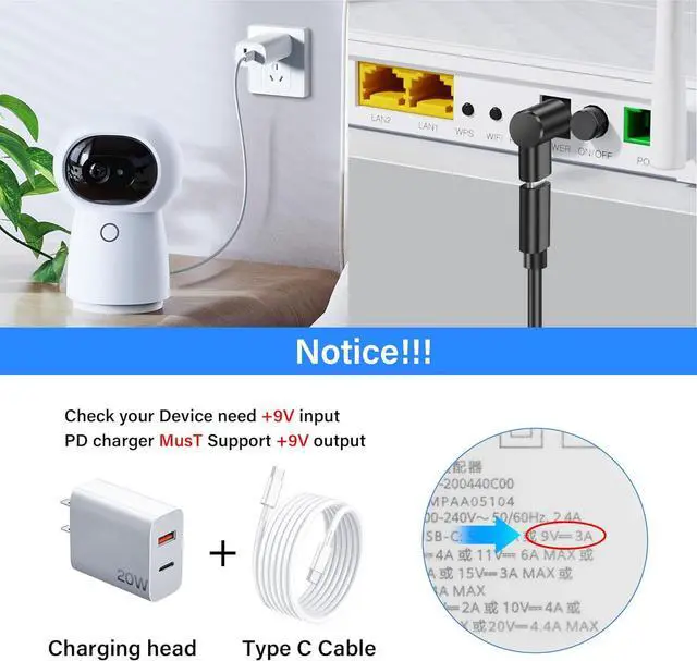 Applicable to support PD fast charging power adapter, charging treasure connected to the C to C fast charging cable for DC power port output 9V voltage optical cat, routers, printers, small appliances and other DC interface equipment use