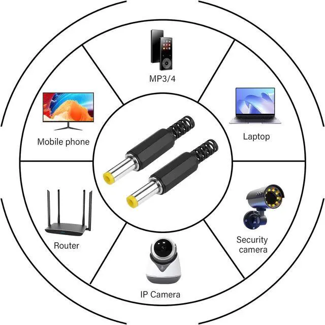 Widely used in CCTV security cameras and lighting power adapter cables, media players, MP3 MP4 players, audio-video equipment, AV equipment, laptop computers, car stereos and so on.