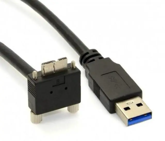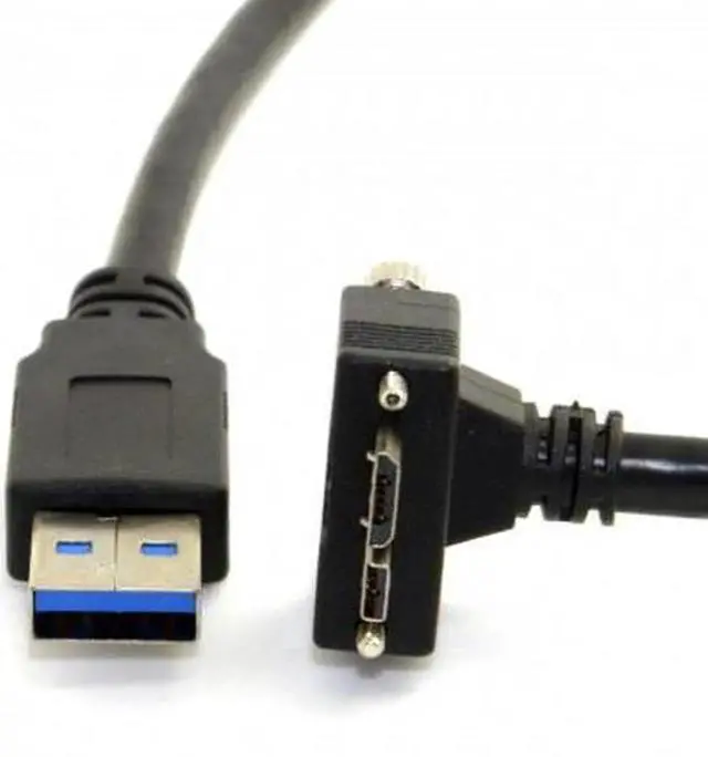 3m 90 Degree Down Angled Micro USB Screw Mount to USB 3.0 Data Cable for Point Grey Chameleon Camera