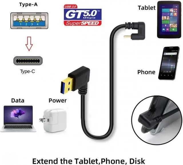• USB3.0 Type-A to Type C USB-C Male to Male Power Data Cable 5GbpsUSB-C Opposite U Shape Back Angled
