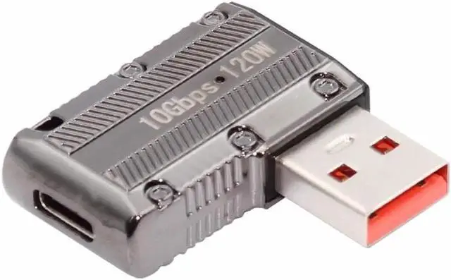 USB-C USB 3.1 Type C Female to USB 3.0 Type-A Male 90 Degree Right Angled Flat Type 10Gbps Data 120W Power Adapter Alloy Shell