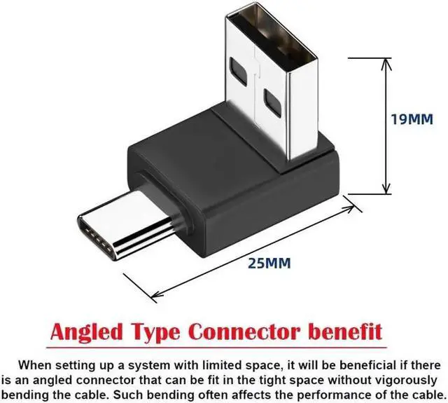 2. The angled type Allowing you to connect it to a female port, even if space around the port is limited.