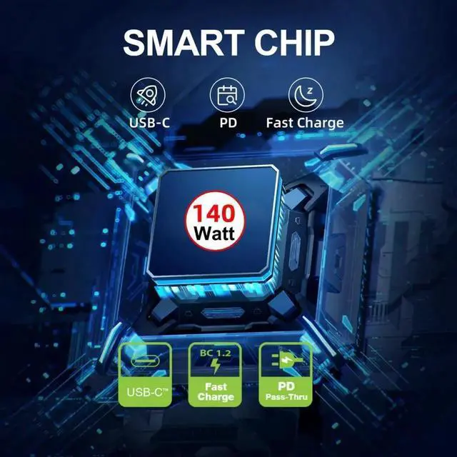 4) Support Type-C PD and QC 2.0 /QC 3.0 /DCP/PE+ 1.1 /PE 2.0 /FCP/AFC/SFCP/SCP/USB PD, Input DC15V- 20.5V; Output 140W max. (5V/ 1.5A, 9V/2A, 20V/7A)