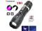 2 in 1 LED Torch with 4 Modes4 modes of LED flashlight: High brightness/ Average brightness/ Strobe/ Ultraviolet. Super bright LED torch with zoomable function, generates a perfect focused spotlight with a longer irradiation range (up to 350 meters); or a brilliant large area floodlight for a much wider view. Perfect for outdoor, nightwalk, hiking, fishing, cycling, backpacking, camping and BBQ.