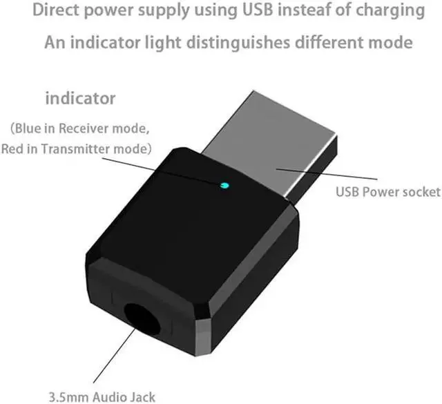 2. When you use our device to be as transmitter or receiver , you need to use 3.5mm AUX cable to connect your device with our device(because the 3.5mm AUX cable was used for audio input or output), then it can be into the pairing mode,and you can pair with your devices.