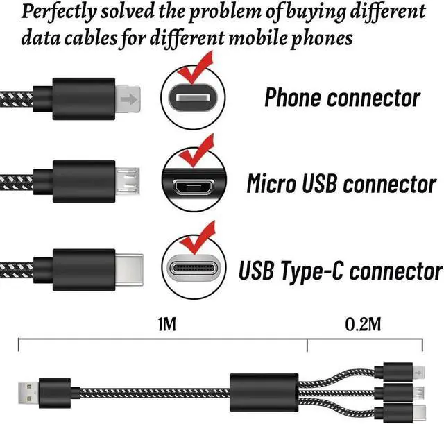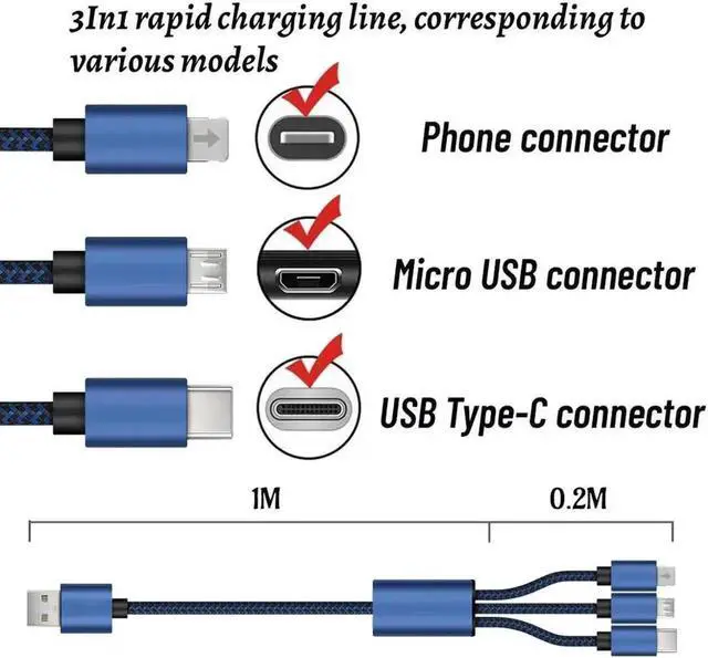 3 In 1 USB C cable 3A fast charging nylon braided charger for Android phone Micro USB fast charging cableMain features: Three interfaces corresponding to multiple mole phones are more convenient and practical
