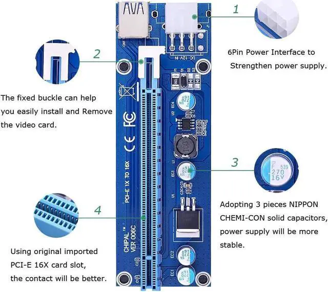 6. Compatible with 1x, 4x, 8x, 16x PCI-E slot of the motherboard.