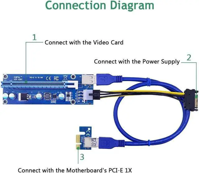 VER006C PCI-E Riser Card 006C PCI E PCIE 1X to 16X 60CM 100CM USB 3.0 Cable SATA to 6Pin Power Cord for BTC LTC Mining