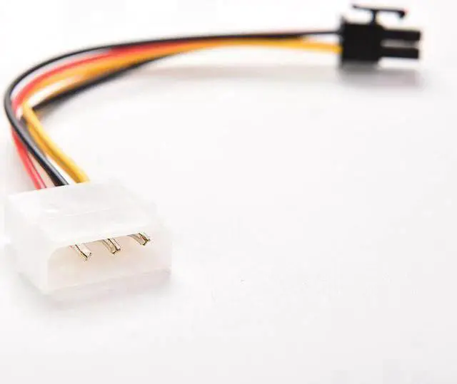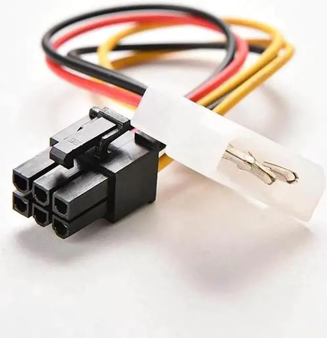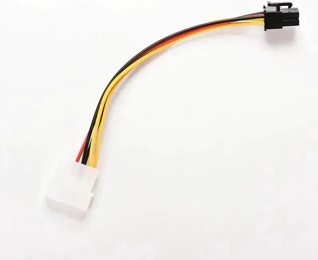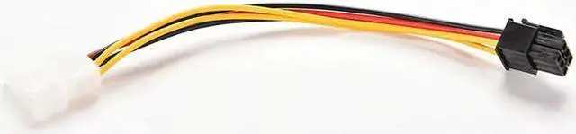 Specifications length: 17cm in total, 13cm between connectors.FeaturesOne White 4-Pin Connector with Male PinsOne Black 6-Pin PCI-E Connector with Female PinsPCI Express PCI-E 6Pin Power Adapter
