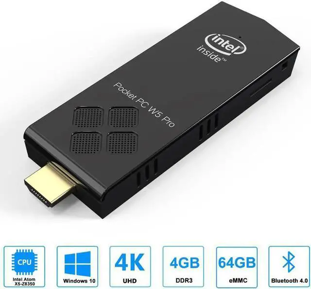 Main Features Atom Z8350 CPU, 4 core 4 threads,64 bit, 14nm 1.44GHz up to 1.92GHz, 2M cache HD Graphics 400 GPU, support 4K @ 30Hz RAM: 4GB/8GB LPDDR3 ROM: 64GB/128GB eMMC Support Windows and ubuntu operation system 2.4GHz + 5GHz dual band WiFi, fast and stable network access Only 65g, the smallest full-featured windows computer