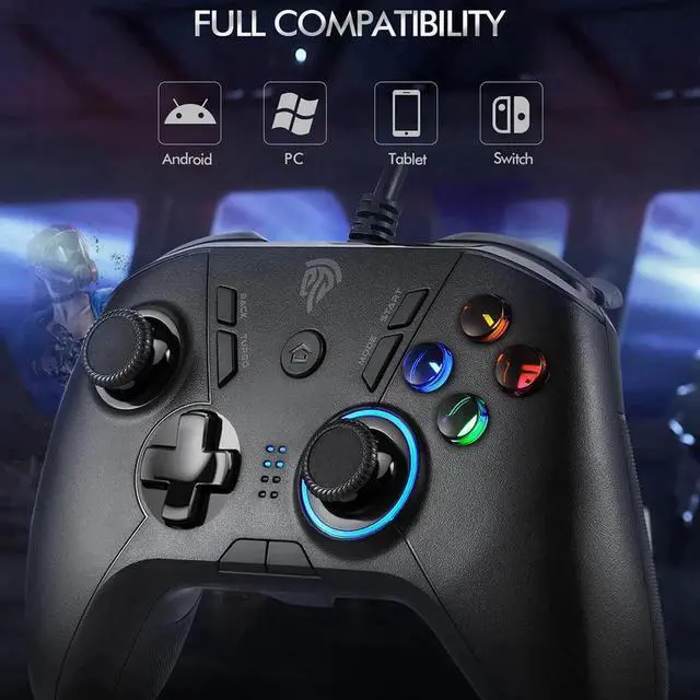Adjustable LED light] handle ABXY button and right joystick with cool LED light, 5 levels of light brightness can be adjusted