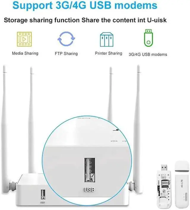 Support 802.11b/g/n network protocol, the transmission rate up to 300Mbps. Equipped wth 4 external antennas, which can cover a larger area.