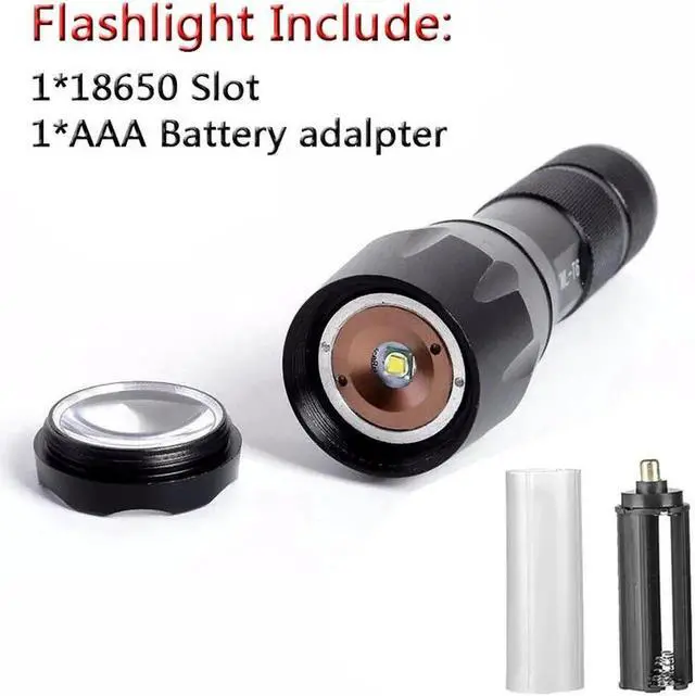 Option C : 1*Flashlight + 1*18650 Battery Slot + 1*AAA Battery Adapter + 1*18650 Battery + 1*Charger + 1*Head Belt