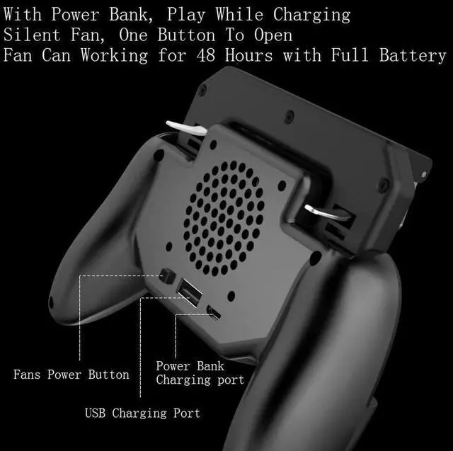 Controller Gamepad Mobile Trigger L1R1 Shooter Joystick Game Pad Phone Holder Cooler Fan with 2000/4000mAh Power Bank