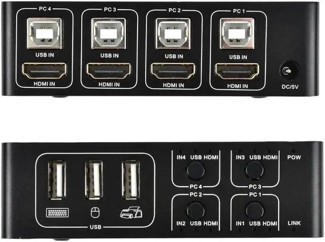 Descriptions:This 4-Port 4K HDMI KVM Switch - One set of keyboard and mouse control 4 hosts Laptop or game console. Help you save the desktop