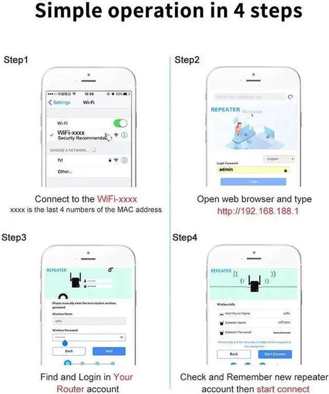 Can be compatible with 99.99% routers, English settings interface, you can through mobile phones, pad smart terminal device for quick settings.