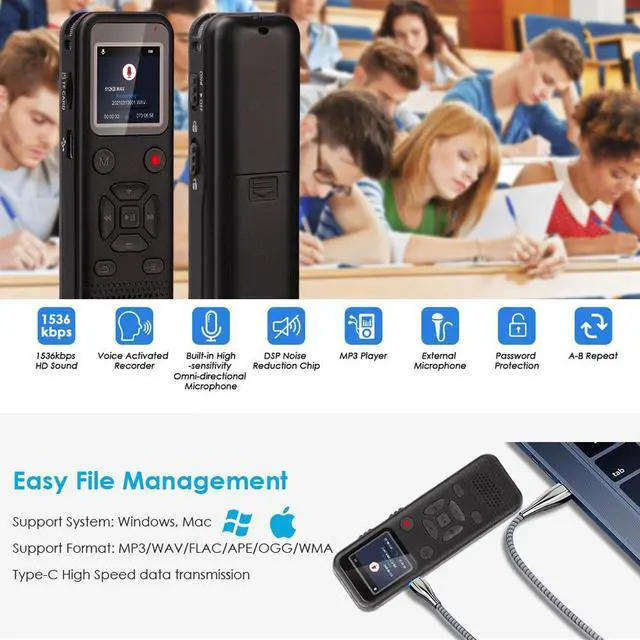 Voice recorder - compact and portable, with detachable battery, suitable for conference recording. Voice recorder is portable and ideal for meetings.