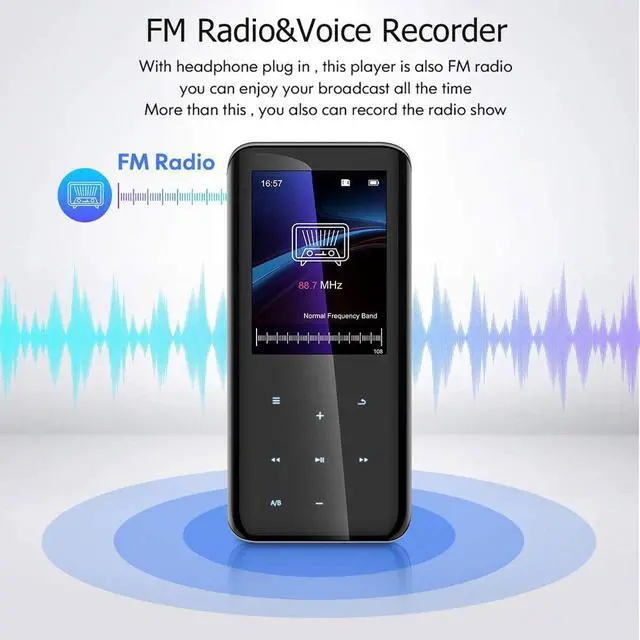 MP3 player with Bluetooth external speaker and touchscreen. MP3 for students. Music without loss. Android for music playback. Insertable card with 32GB memory.