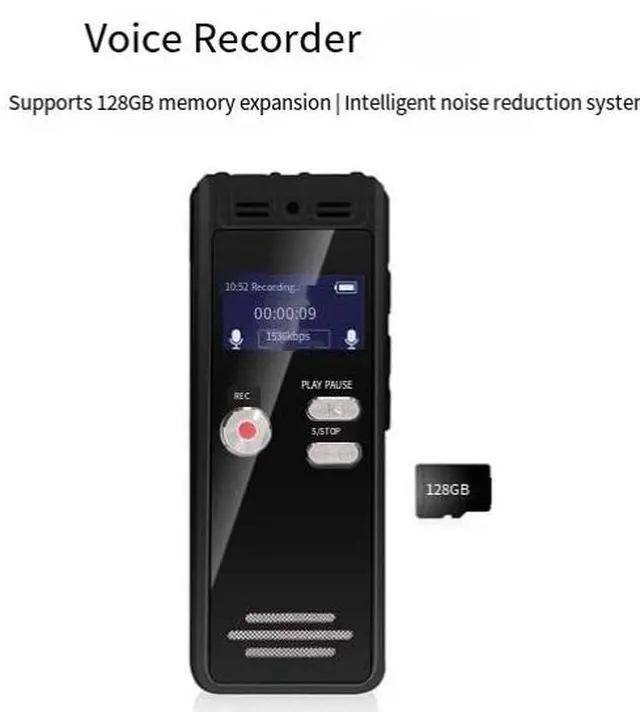 Best-selling voice recorder with high-definition noise reduction, external card slot, portable for students' classes, meetings, business, voice control, compact design.