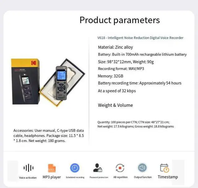 High-definition intelligent noise reduction and control recording portable portable conference student class recording voice recorder