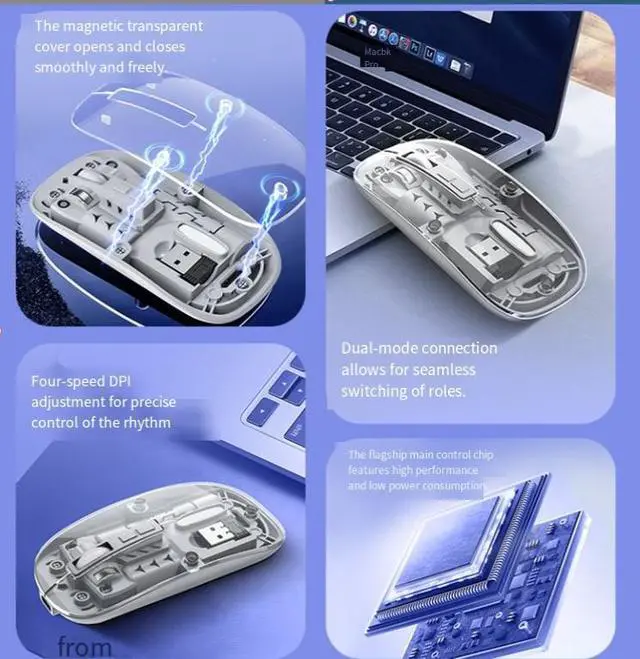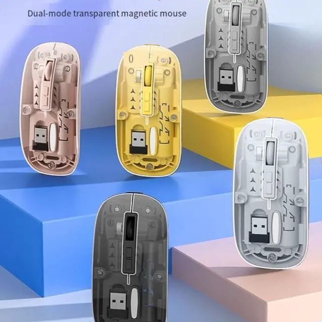 Best-selling transparent wireless Bluetooth mouse with dual-mode wireless charging, silent and portable for notebook office use.